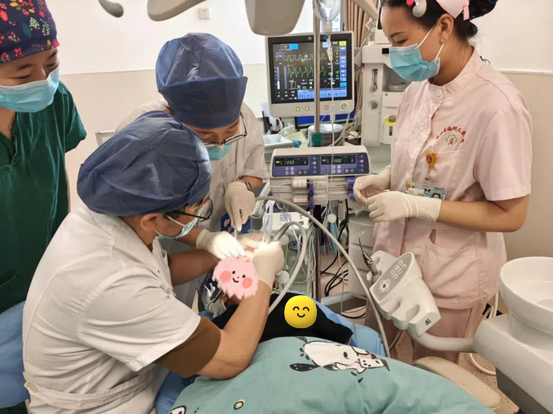 “必须尽快治疗。由于孩子无法配合、治疗时间又长,建议实施舒适化治疗。”魏凤华和家属沟通后,立即联系麻醉科,经评估后决定在全麻状态下为明明进行治疗。
